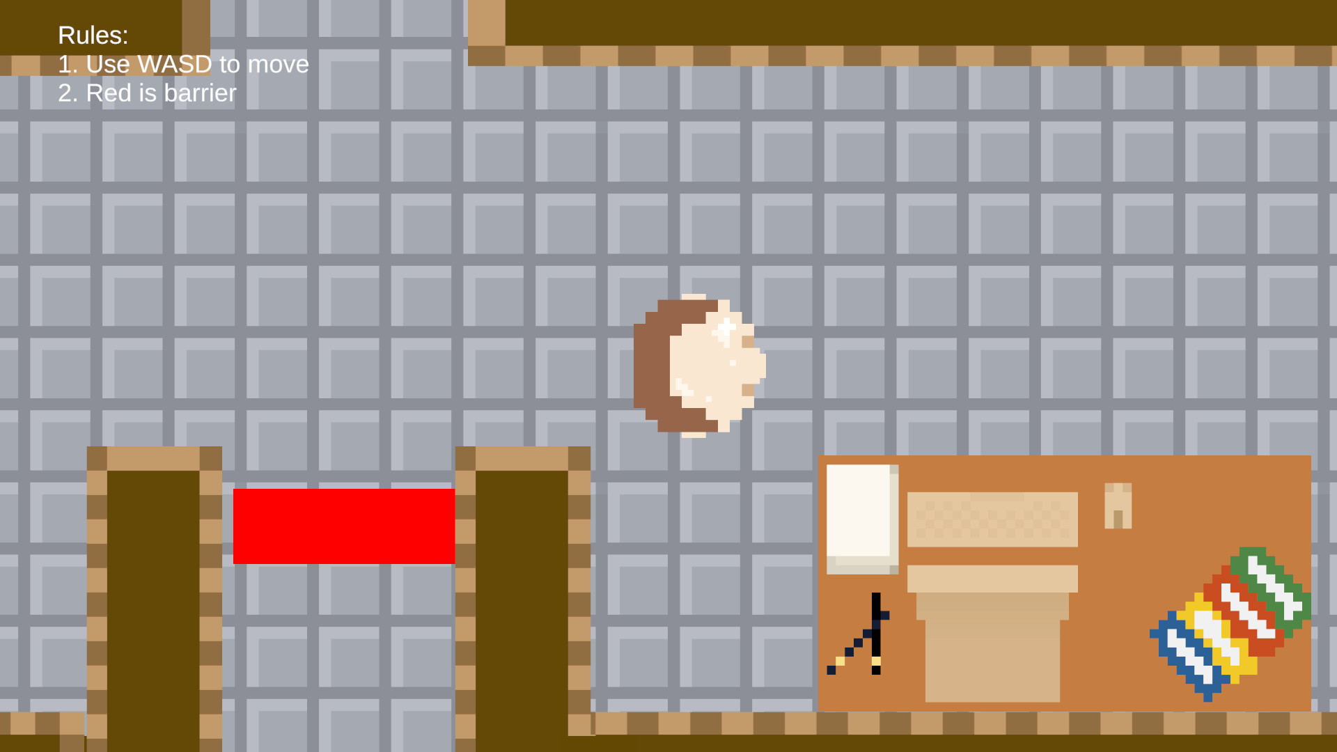 A submission for GameJam Nitra2026! A small, 4 level game where rules don't apply, and you'll have to think outside the box to progress!